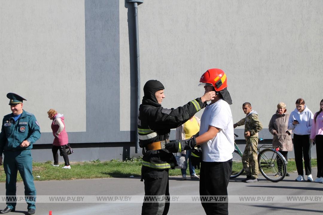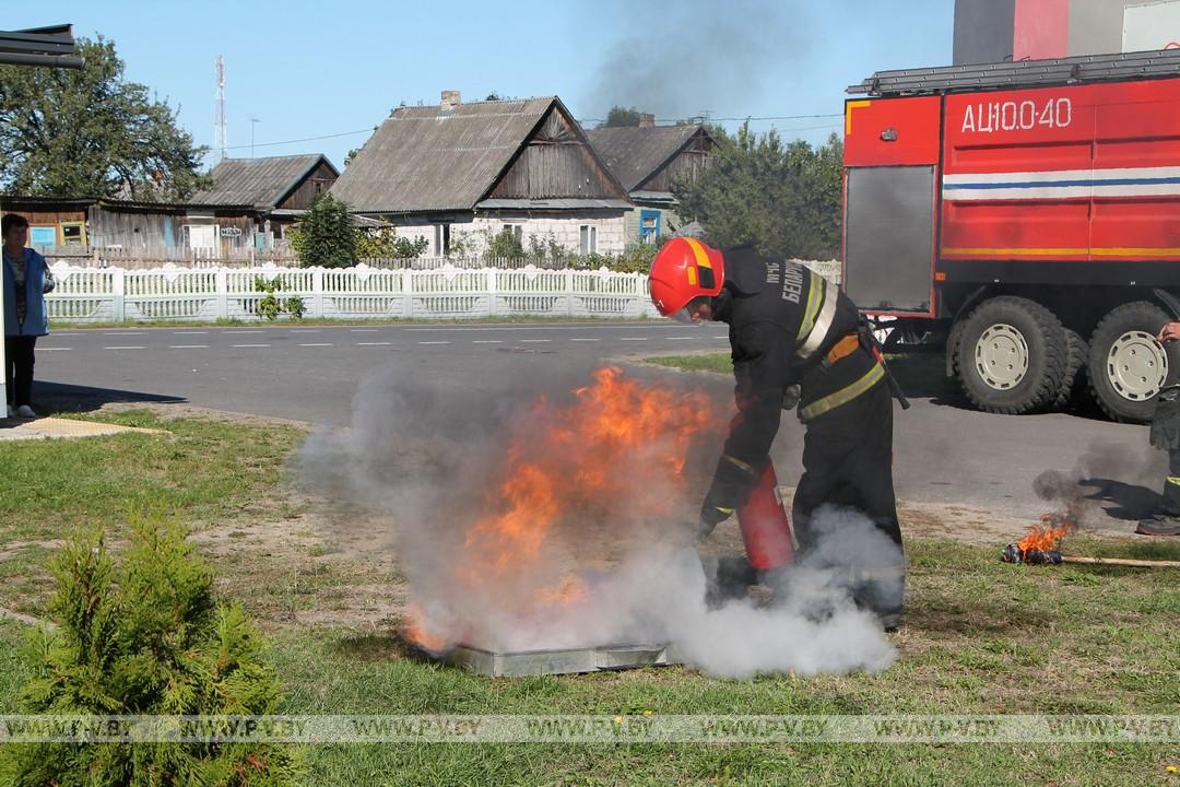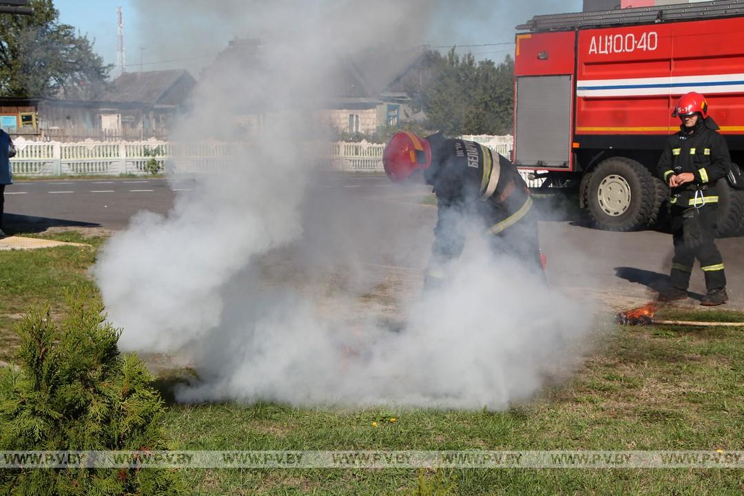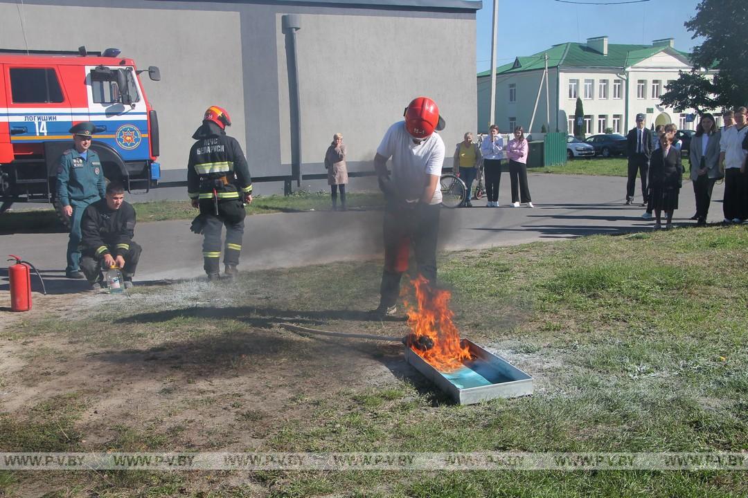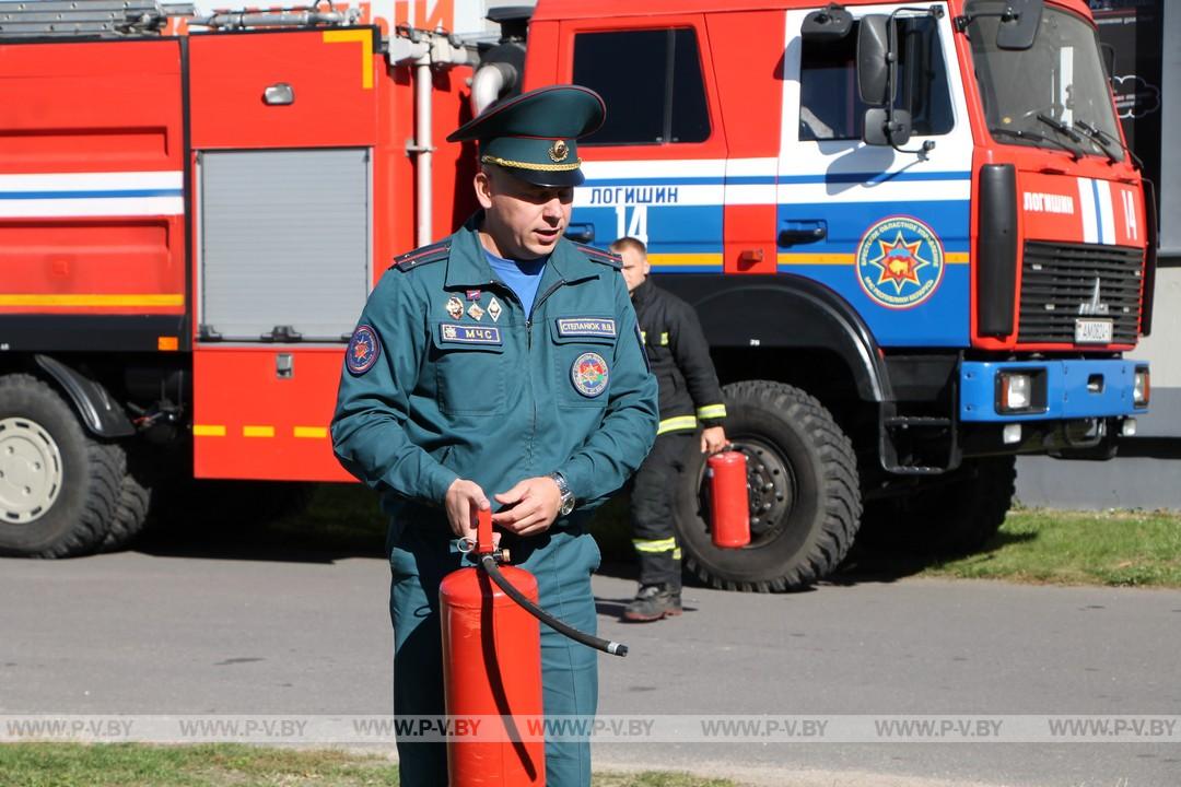 После теоретической части всех ждала практическая. Старший инспектор сектора пропаганды и взаимодействия с общественностью Пинского ГРОЧС Валерий Степанюк рассказал, как пользоваться огнетушителем, а сотрудники ПАСЧ № 18 г.п. Логишин показали это, ведь многие делают это неправильно. Попробовать потушить импровизированный пожар могли все желающие.