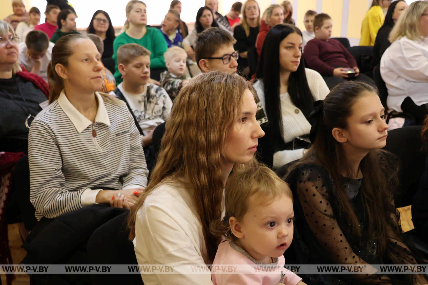Началась она праздничным мероприятием, посвященным Дню матери. С концертными номерами перед мамами воспитанников центра выступили сами ребята, а также творческие коллективы центра дополнительного образования детей и молодежи г. Пинска.