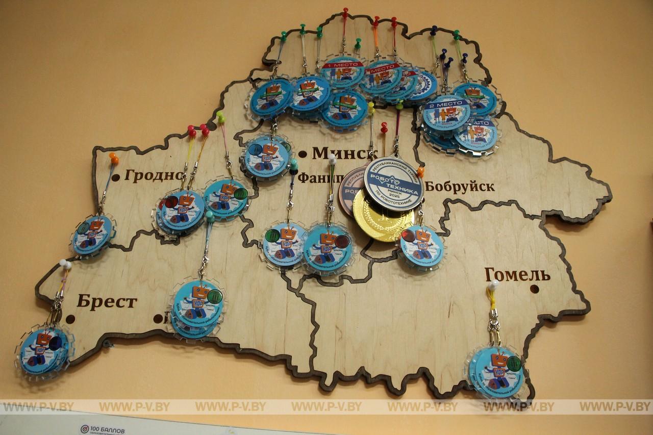 В STEM-классе есть необычная карта Беларуси, которая демонстрирует достижения RoboClever – около 30 медалей украшают ее. За минувший учебный год пинчане побывали практически во всех областях Беларуси. Весь сезон 2024-2025 был успешным для любителей робототехники.