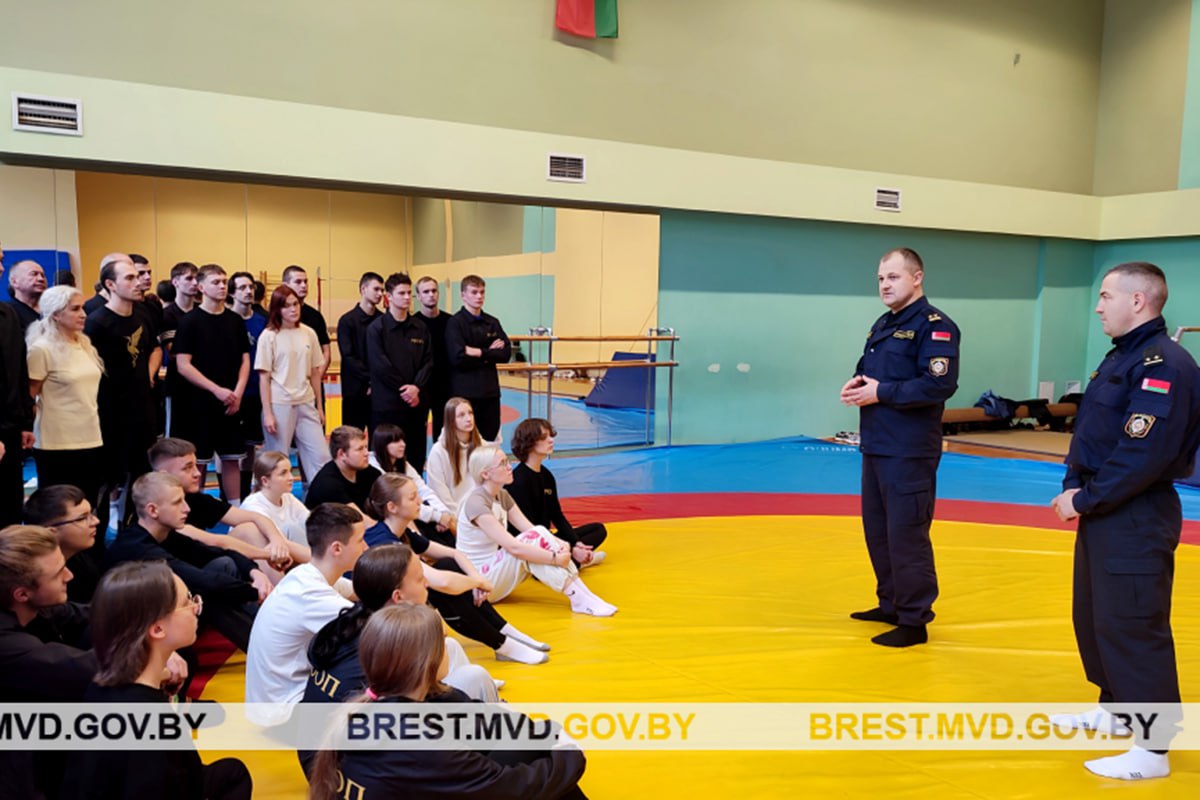 Занятия проведены на базе универсального спортивного комплекса «Волна» ПолесГУ. Ими руководили командир роты патрульно-постовой службы милиции Пинского ГОВД Эдуард Копачев, инструктор ЦПЛС УВД Брестского облисполкома Роман Ерш.