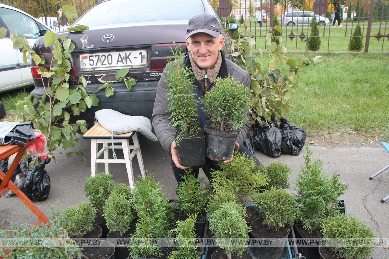 Направилась к месту, где расположены саженцы туй. Продавец Александр Ващилко представился и с удовольствием рассказал о себе и своей продукции. В свое время окончил Белорусский национальный технический университет по специальности «лесное хозяйство». Со знанием дела занимается выращиванием яблок, груш, разведением саженцев деревьев, содержит пасеку.