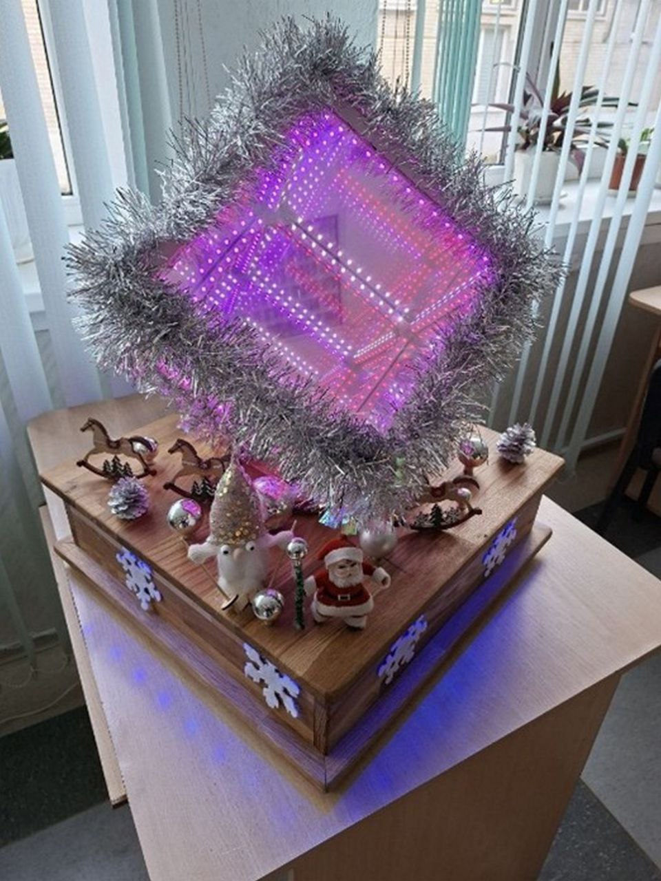 Особые впечатления вызвали такие авторские работы, как «Гиперкуб», «3D-карусель», рум-бокс «Новогодний уют» и рождественская музыкальная композиция «Новогодние хлопоты».