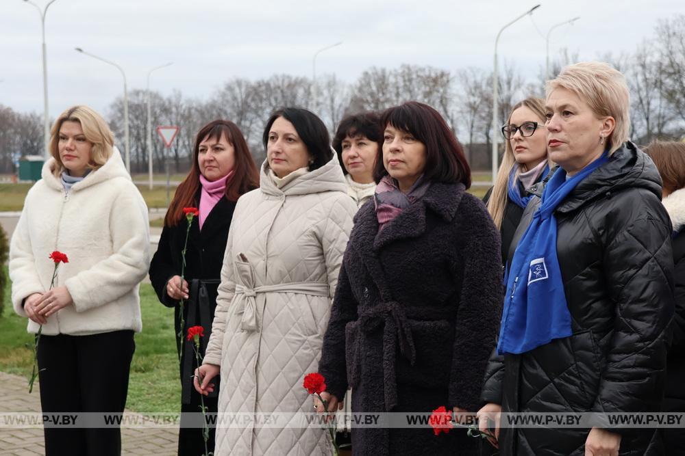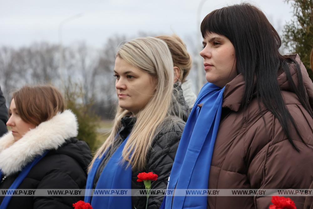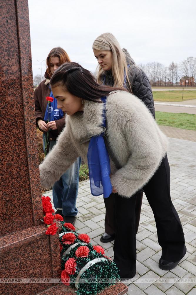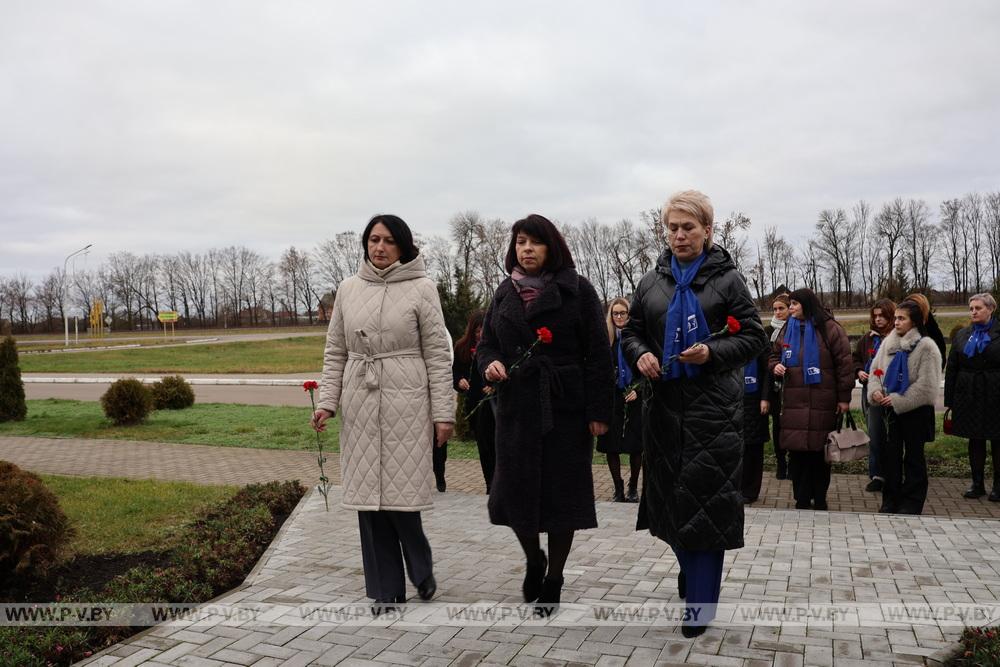 Перед рабочей частью мероприятия делегаты почтили память погибшего при освобождении Пинска Героя Советского Союза Тихона Калинина, возложив цветы к его бюсту в д. Почапово.