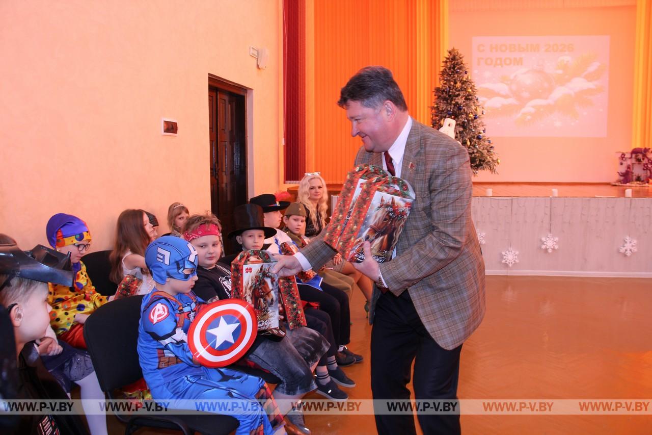 В гости к мальчишкам и девчонкам пришли много гостей. Представители Пинского филиала «Камертон» ОАО «Интеграл» подарили ребятам новогодние сладости, а председатель городского отделения Белорусской партии «Белая Русь» Сергей Куницкий вручил директору школы Татьяне Кравчук сертификат на сумму 2500 рублей, что станет отличным подспорьем для укрепления материально-технической базы учебного заведения.
