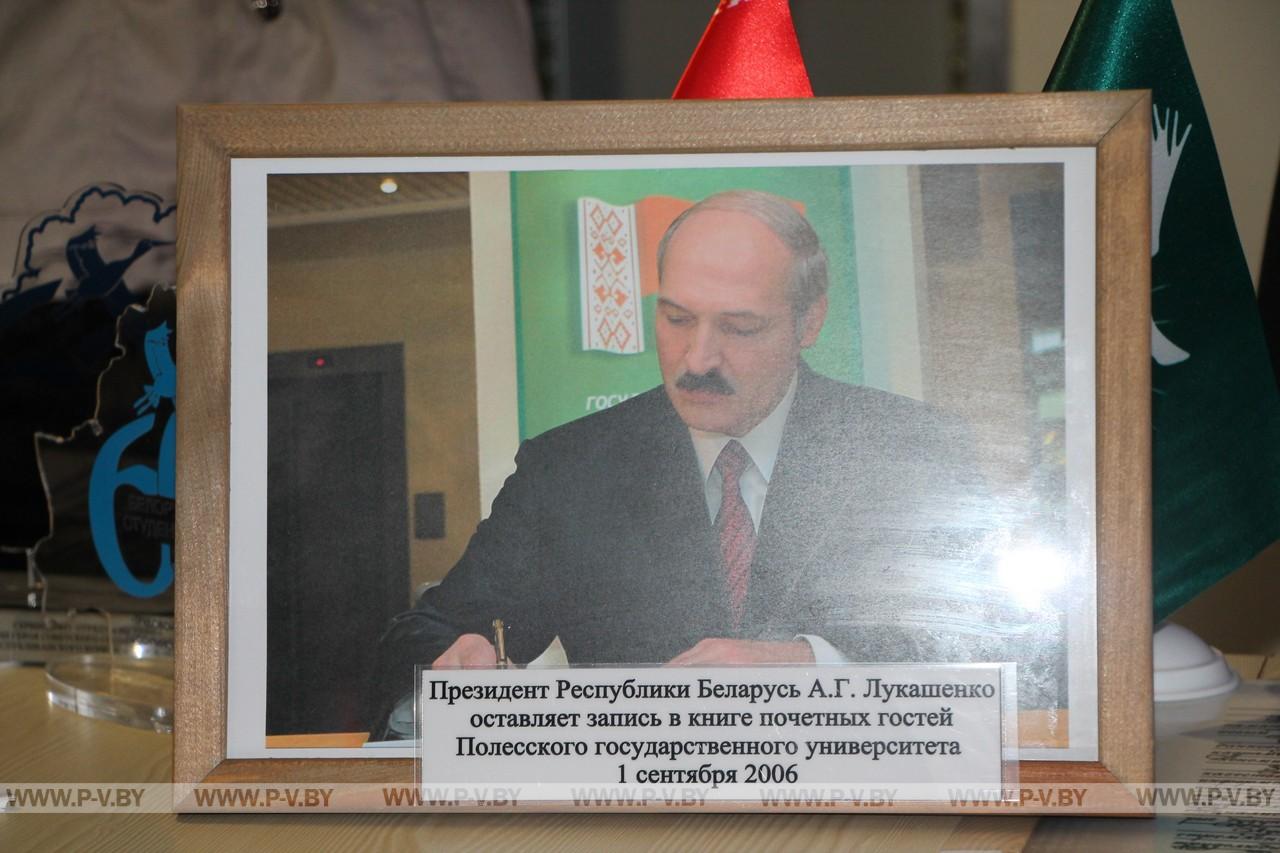 Вначале гости ознакомились с выставкой достижений ПолесГУ. Далее в актовом зале состоялась презентация книги о Президенте Республики Беларусь Александре Лукашенко.
