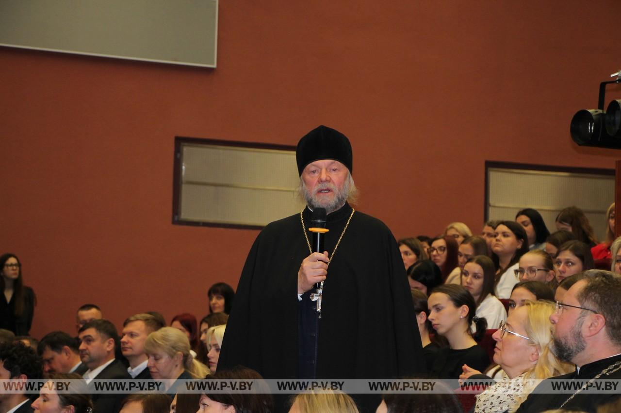 В мероприятии приняли участие почетный преподаватель Полесского государственного университета, председатель Синодального отдела по сотрудничеству со светскими учреждениями образования Фёдор Повный, заместитель председателя горисполкома Николай Новак, заместитель председателя райисполкома Дмитрий Полховский, Почетный гражданин Пинска Александр Каневский.