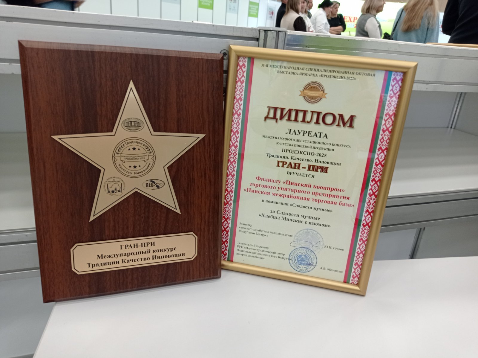В международном дегустационном конкурсе качества пищевой продукции PRODEXPO-2025 «Традиции. Качество. Инновации» в номинации «Сладости сахарные» золотую медаль филиал получил за козинаки «Флорента», в номинации «Сладости мучные» Гран-при удостоены «Хлебцы Минские с изюмом».