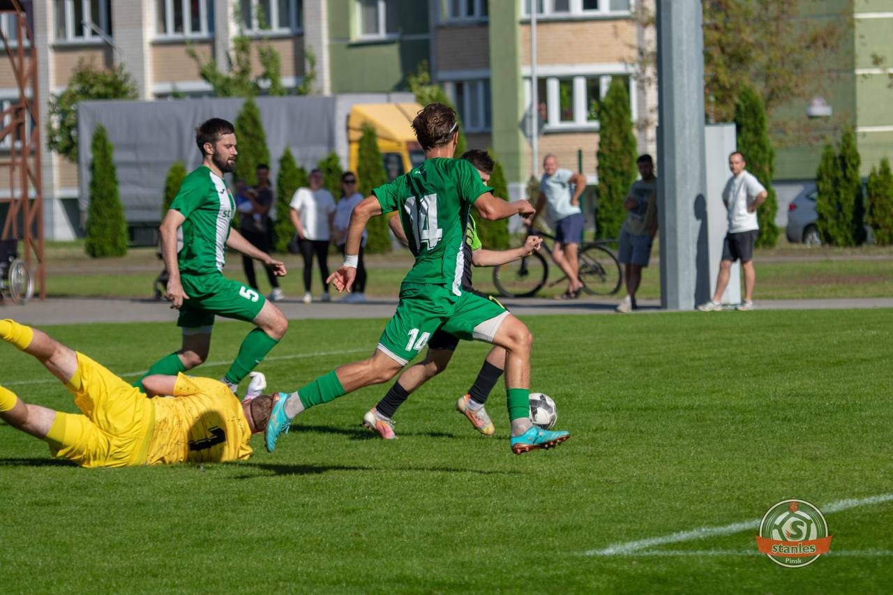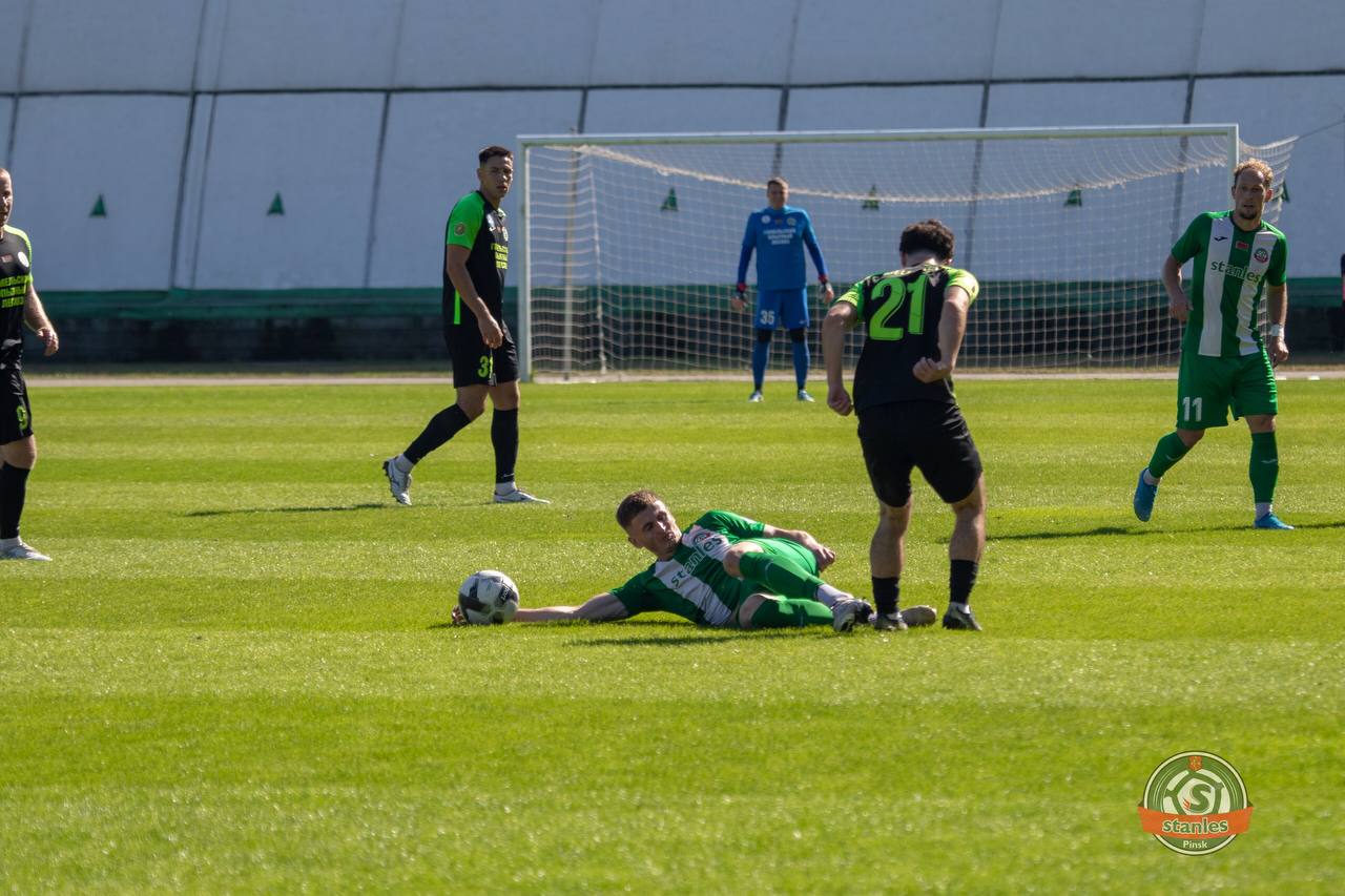 А под конец первого тайма и вовсе вышли вперед минчане, усилиями все того же Ильи Козлова — 2:0. Ко всем проблем пинчан судья еще и удалил капитана «Стэнлеса». Удар по ногам оказался незамеченным, что возмутило игрока пинчан. Судье эти эмоции не понравились — прямая красная карточка.