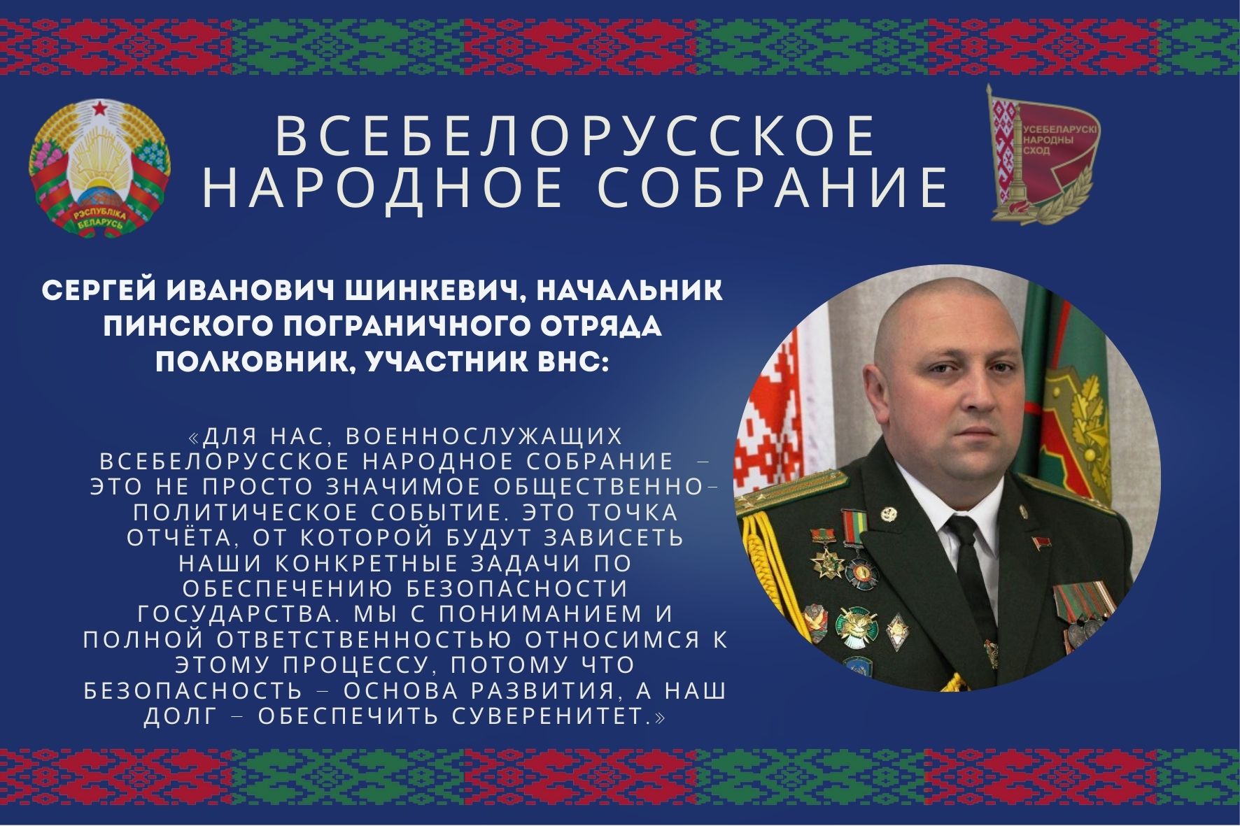 Для нас, военнослужащих Пинского пограничного отряда, предстоящее Собрание – это не просто значимое общественно-политическое событие. Это точка отсчёта, от которой будут зависеть наши конкретные задачи по обеспечению безопасности государства.